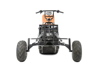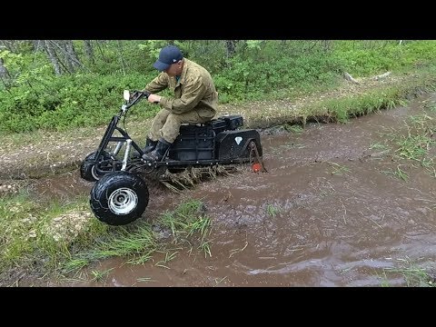 Комплектуется качественными колесами, амортизаторами импортного производства, складным креслом из 8ми мм бакфанеры, покрытой поролоном и обитой качественным кожзаменителем, светодиодной фарой. Светодиодная фара комплектуется фирменным пластиковым чехлом, позволяющим сохранить фару целой при транспортировке. Профилированная труба покрывается порошковой эмалью.