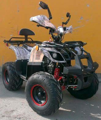 На квадроцикле установлен двигатель объемом 110 см3. Сцепление полуавтомат (3 вперед 1 назад). В отличие от вариатора делает его более проходимым по бездорожью из за повышенной и пониженной передачи двигателя. Утилитарный внешний вид с передним и задним багажником. Повысят безопасность ребенка - гидравлические тормоза, защита рук, чека аварийного глушения и родительский контроль.